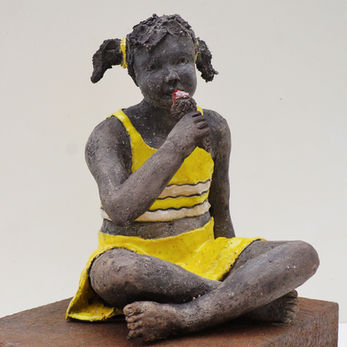 Particularly attracted by the mother-child universe, I create small joyful and optimistic life-scenes. The objective of my work is to make you want to crunch life to the fullest.